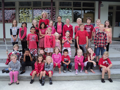 Everyone remembered to dress in red except for Miss Mansell!! Well done Room 1 & 3!