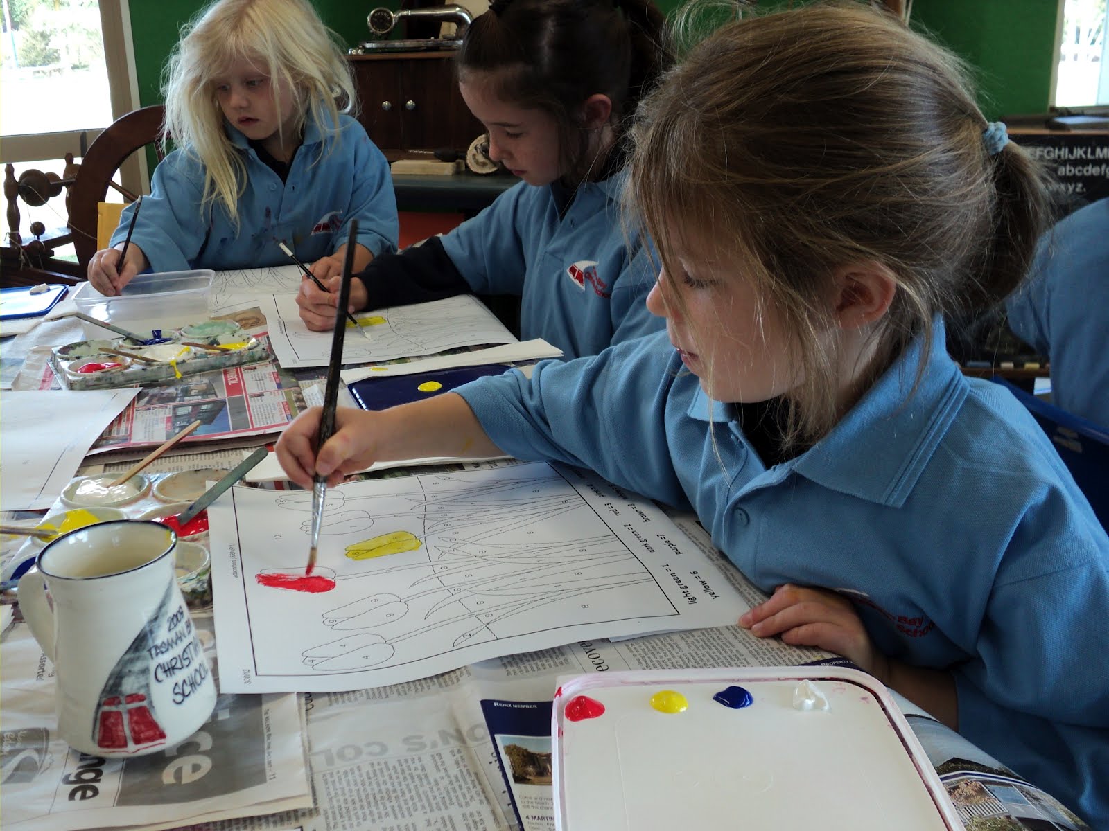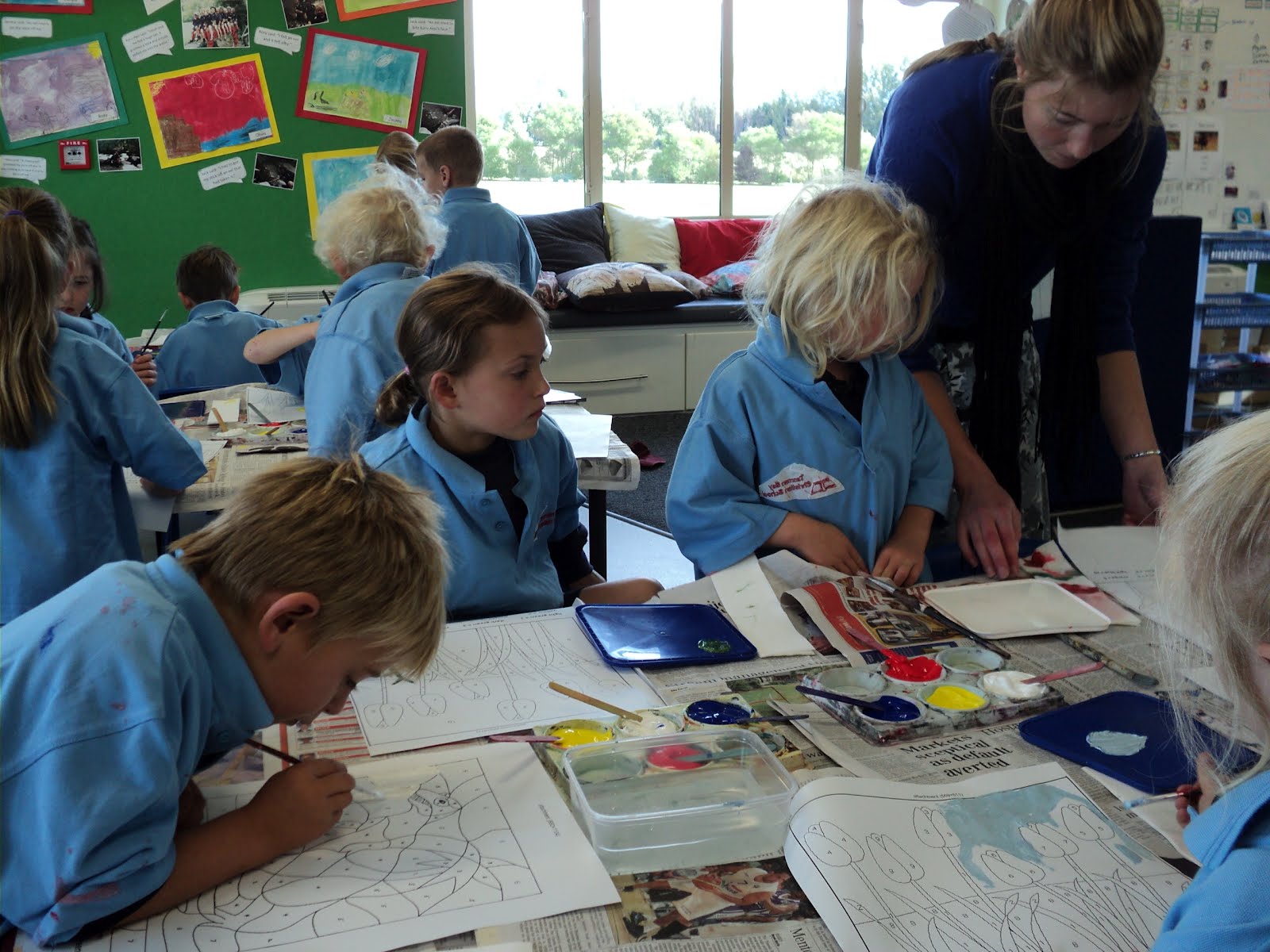 Last Friday we had to follow a key and paint specific colours in specific places. We had to make some of the colours and then use our paintbrush carefully to paint in the right places! Check out our awesome art work in the clock bay just outside room 1 and 2.