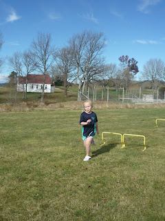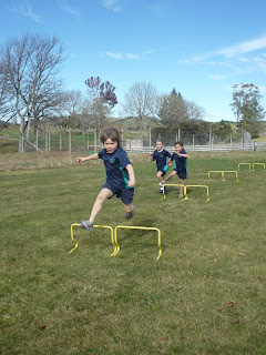 Isaiahs favourite part of crosscountry was running really fast and jumping over the hurdles.