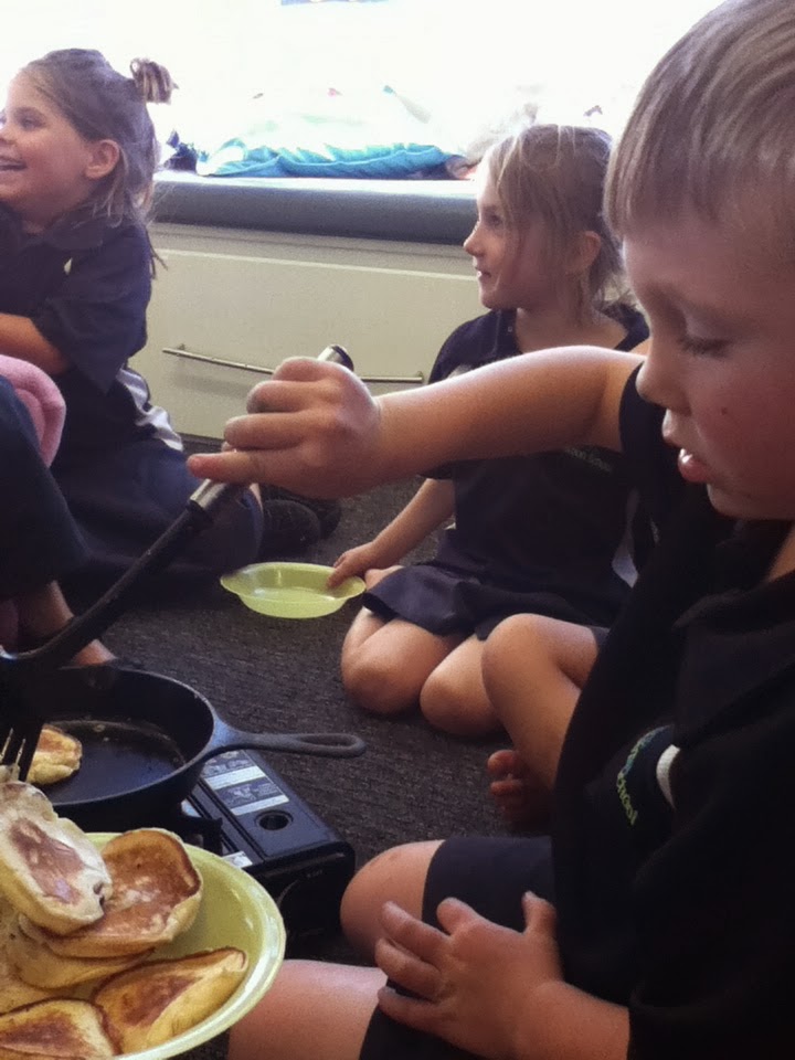 Today for Topic we made a pikelet mixture and then cooked the pikelet mixture into pikelets. We observed what happened while it was cooking. We also noticed all the differences there were before we cooked it and afterwards too. Then we got to eat our pikelets and describe what they were like!!