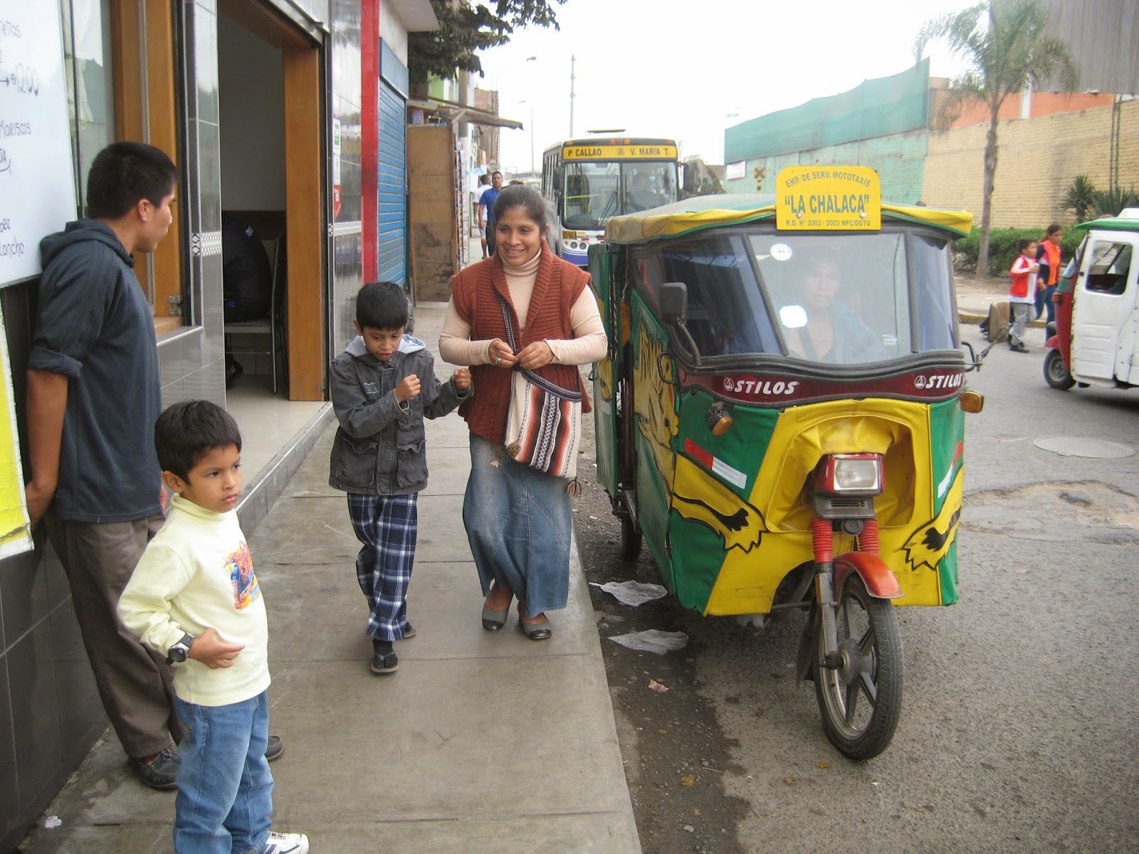 These 3-wheeler motorbike taxis are so common in Peru! They are everywhere! We went in one! You can fit as many people as you want in there!