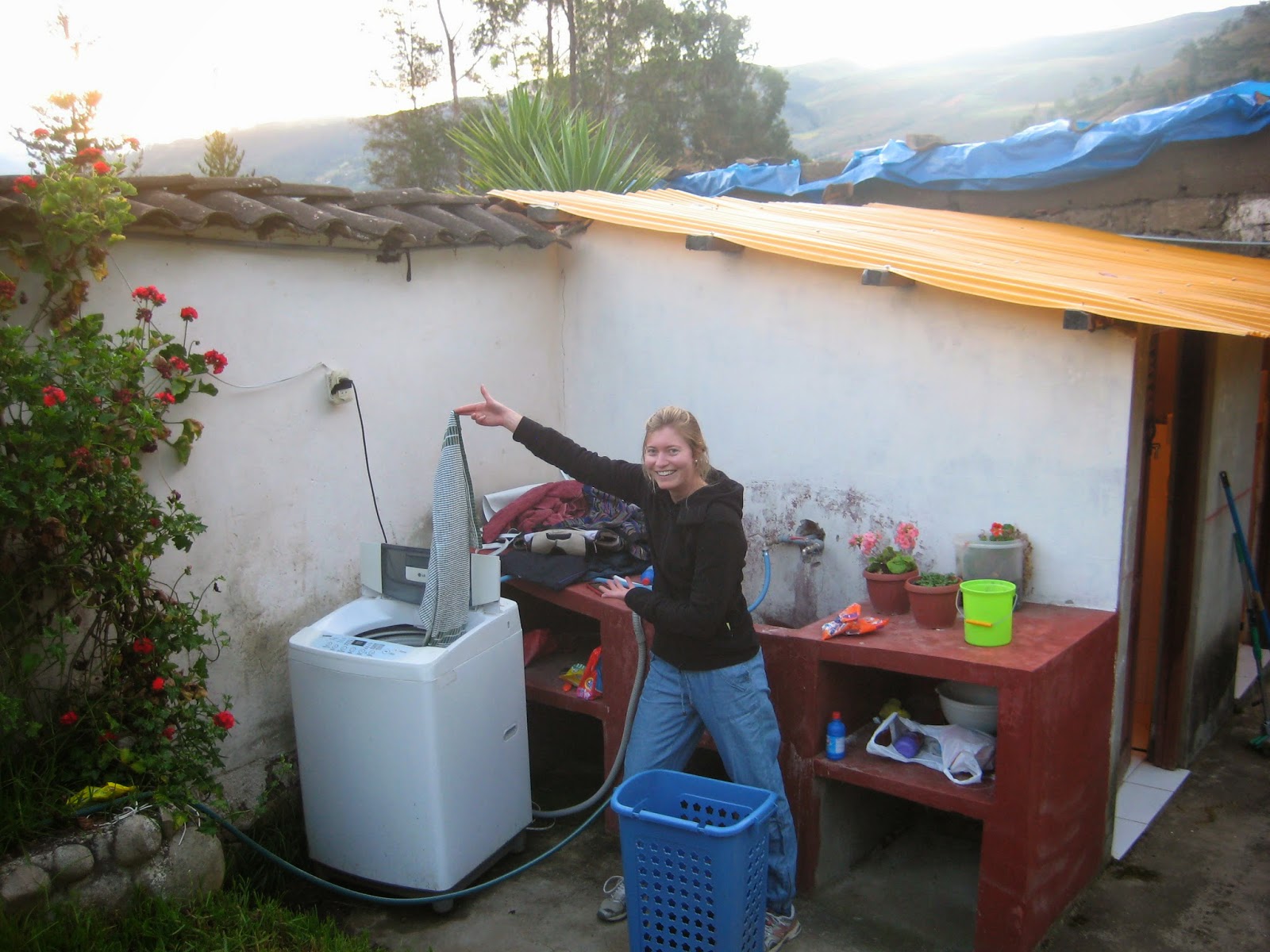 Me doing the laundry. In the shed with the yellow roof is where I have a shower. It is sometimes cold and sometimes warm, but never hot! I miss having a hot shower!