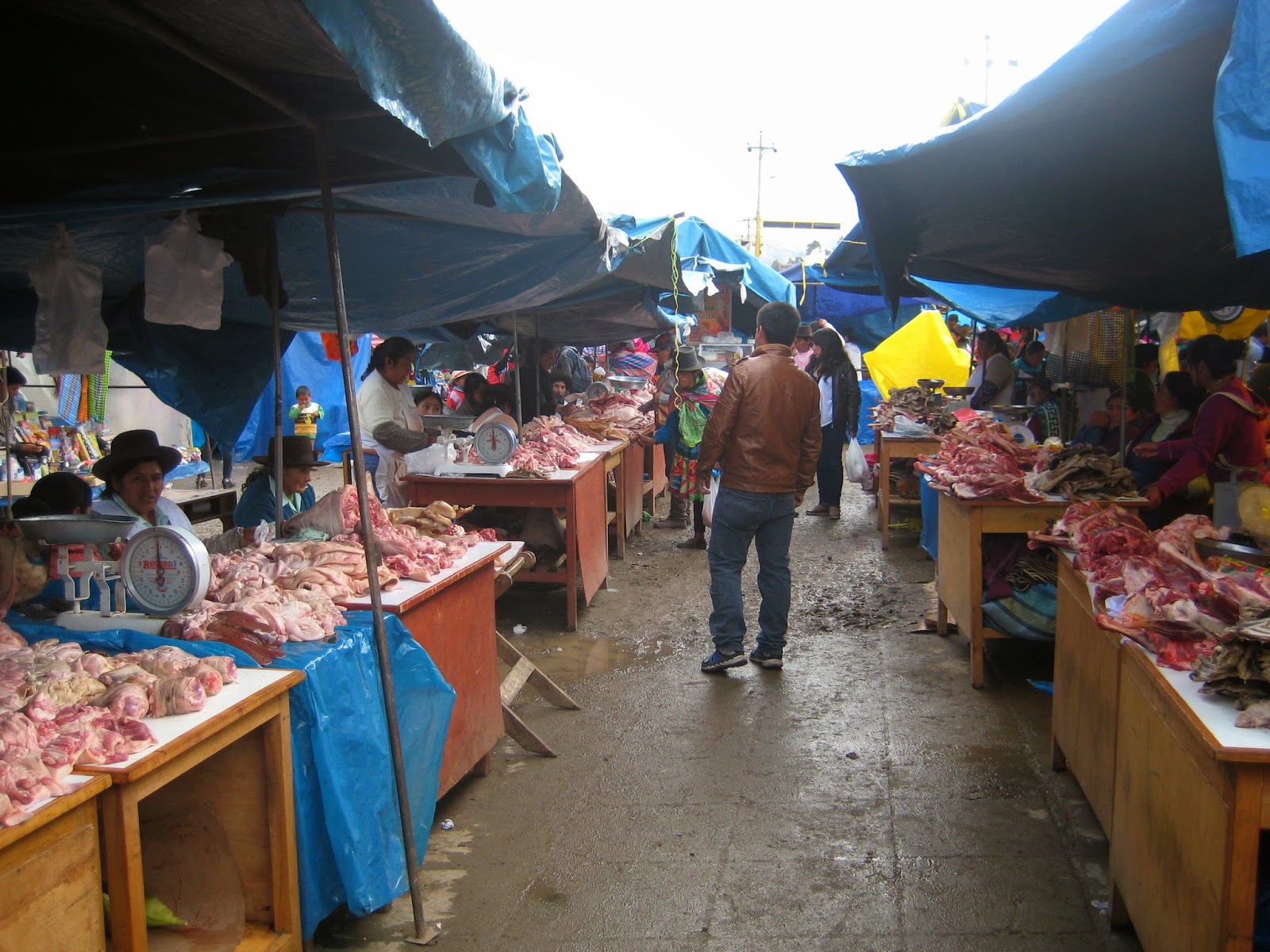 Lots of meat for sale at the market! The ground was really muddy because it had been raining!