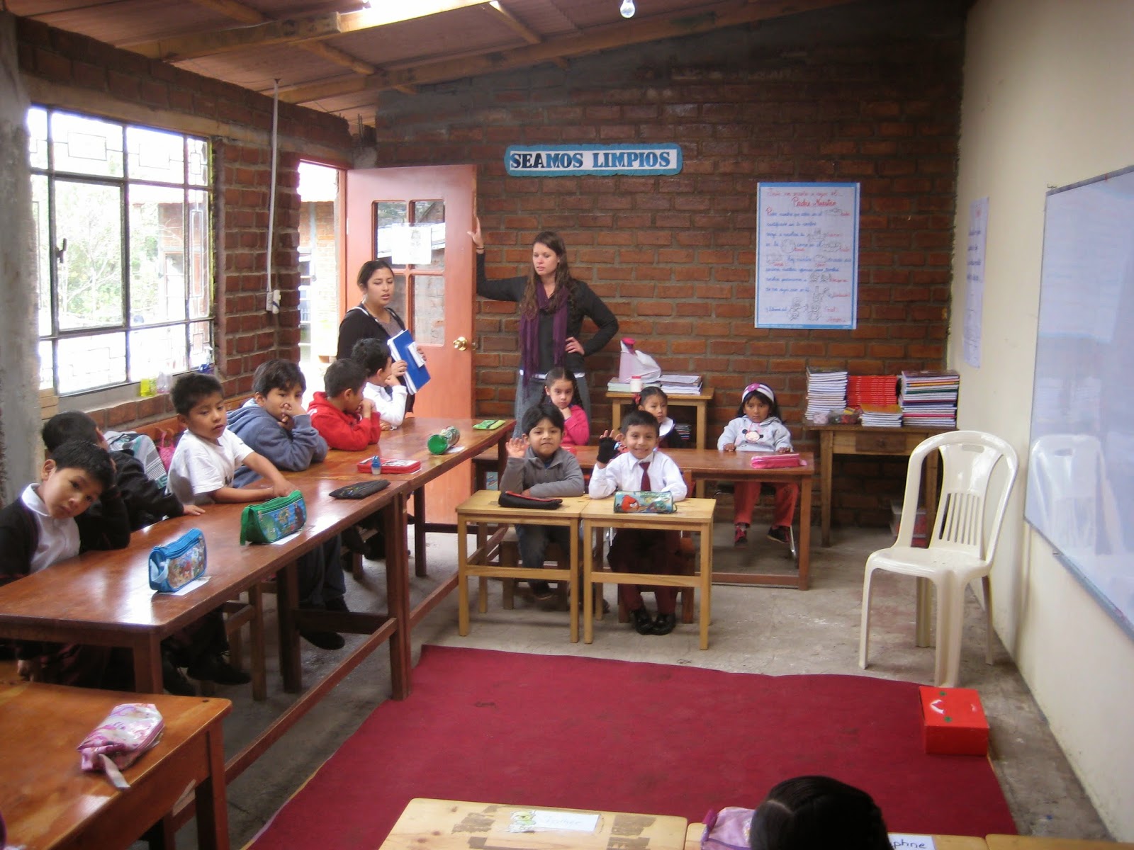 My classroom! I bought a mat so the children could have "mat time." They've never had mat time before! I had to teach them how to sit on the mat with their legs crossed. Some of them couldn't do it! I wished you were all here so you could've helped me teach the children how to sit on the mat because you all do it so beautifully!