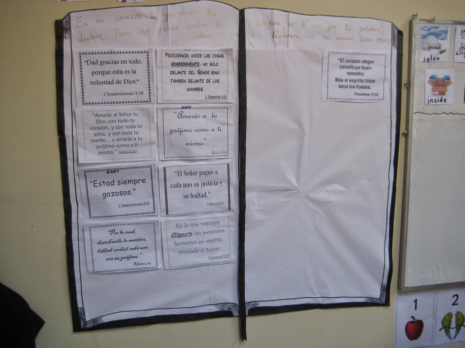 Here is a big Bible on the wall! The children learn verses from the Bible.