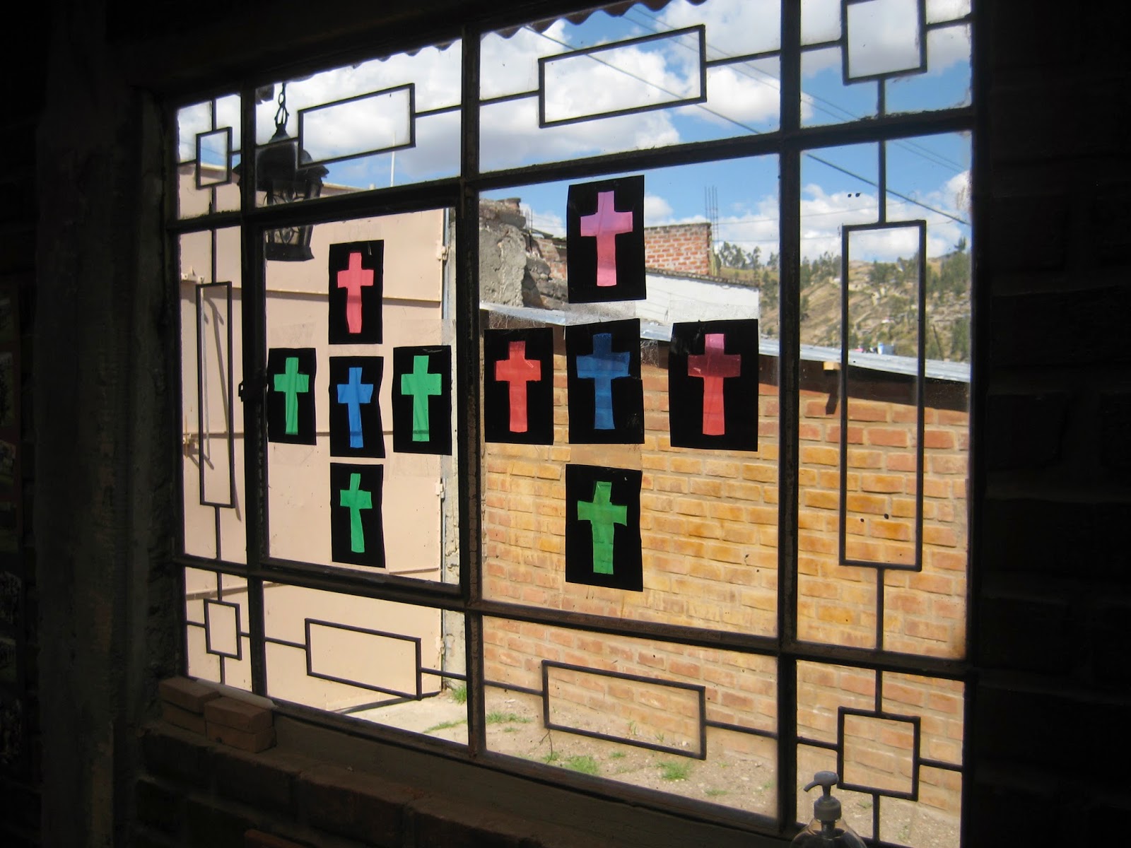We made crosses and put them in the window. They look really good when the sun shines through!